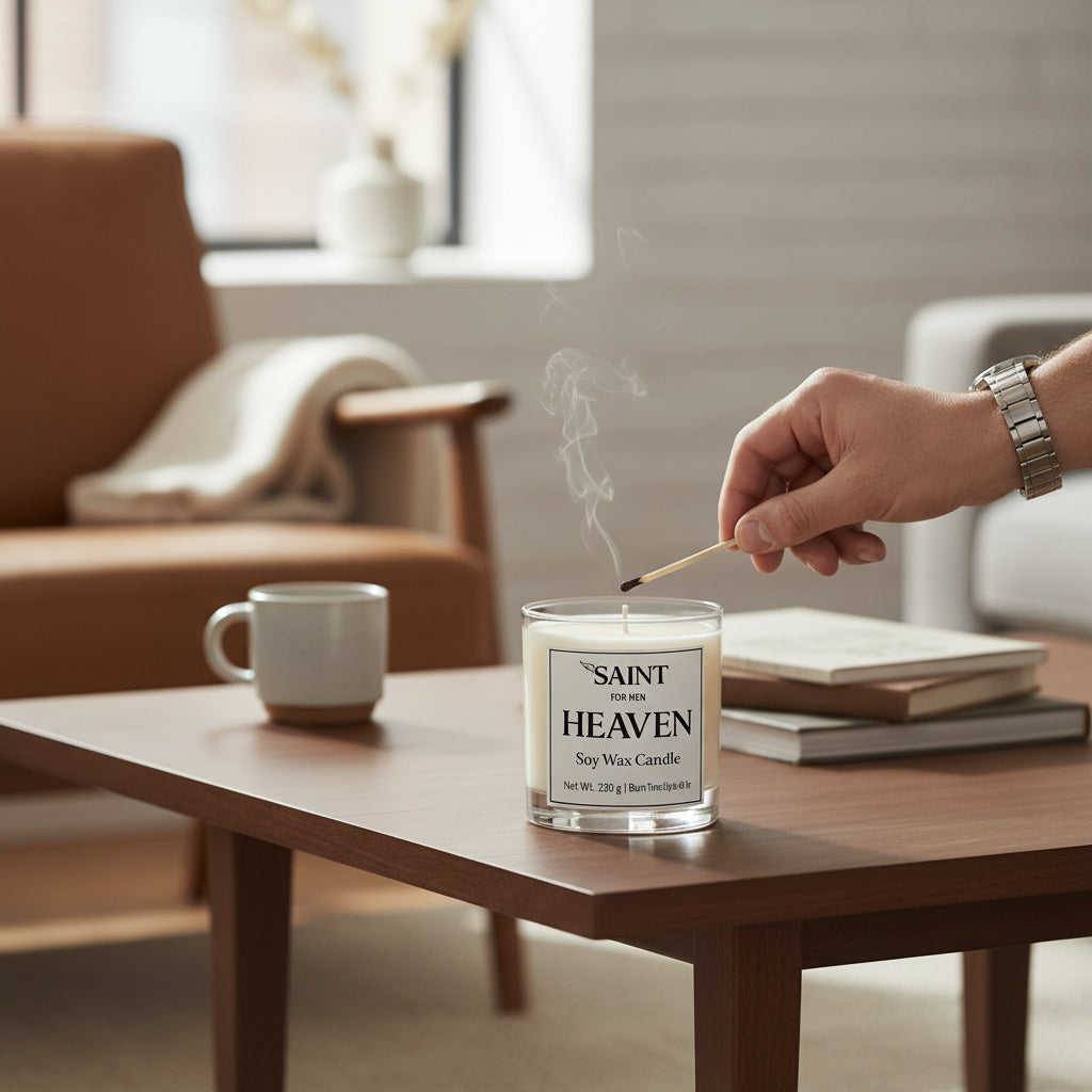 SAINT for Men – Heaven Soy Wax Candle هي شمعة عطرية رجالية جريئة وفاخرة، صُممت لتعكس القوة، والثقة، والنجاح.